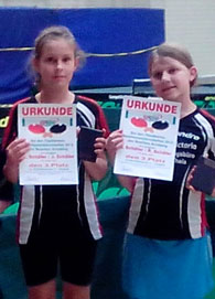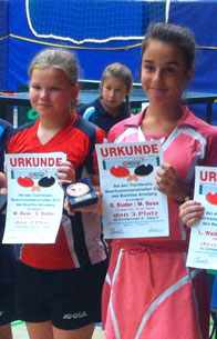 Denise Schirp (Foto links unten) und Viktoria Giese standen nach einem 1:3 im Halfinale des C-Schülerinnendoppels ebenso auf dem dritten Platz wie Denise Schirp im Einzel dieser Altersklasse, als sie erst in der Runde der letzten Vier von der späteren Siegerin M.Kis (SV Holzen) gestoppt werden konnte.